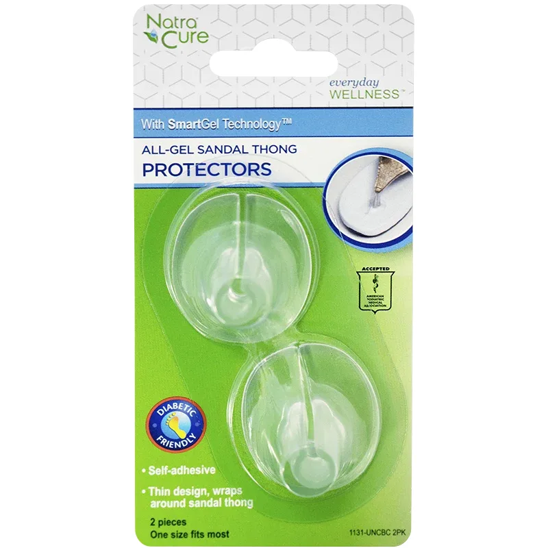 NatraCure Tåskydd Sandal skyddar huden mellan tårna från skavsår och blåsor. Tåskyddet absorberar tryck, stötar och friktion utan att kollapsa. Tillverkad av transparent tåligt gelmaterial som är mjukt, följsamt och självhäftande. Kan tvättas och återanvändas. Latexfri. 2 st.